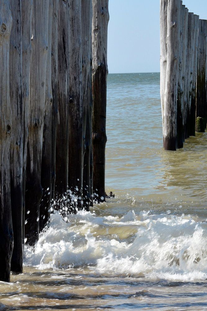 Achetez cette photo Plage avec surf et perches dans la mer par Trinet Uzun sur toile, aluminium, ArtFrame ou photographie (encadrée), impression d'art en haute qualité et tout format.