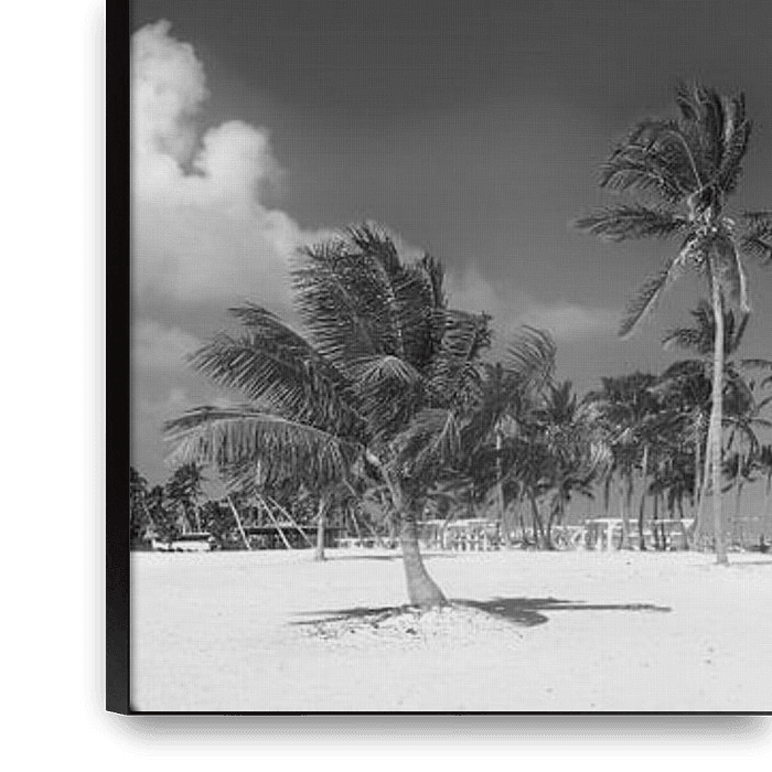 Achetez cette photo Plage des Caraïbes avec palmiers en noir et blanc. par Manfred Voss, Photographie Noir et Blanc sur toile, aluminium, ArtFrame ou photographie (encadrée), impression d'art en haute qualité et tout format.