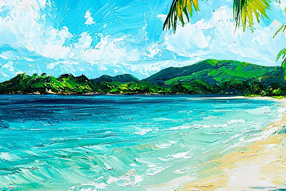 Faites entrer les tropiques dans votre maison avec cette peinture vibrante. Les couleurs vives de la mer, de la plage et des palmiers luxuriants font de ce dessin un véritable accroche-regard. Idéal pour donner à une pièce une atmosphère apaisante et exotique. Parfait pour les amoureux de la nature et de la relaxation, il crée une ambiance sereine dans n'importe quelle pièce.
