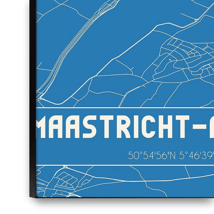 Plan de la carte / plan de la ville néerlandaise de Maastricht-Airport, située dans la commune de Beek, province de Limbourg. La carte comprend toutes les routes publiques et les coordonnées du centre de Maastricht-Airport.