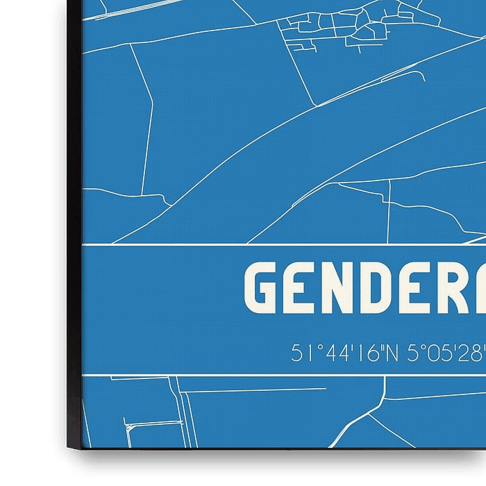 Plan de la carte / plan de la ville néerlandaise de Genderen, située dans la commune d'Altena, province de Brabant septentrional. La carte comprend toutes les routes publiques et les coordonnées du centre de Genderen.