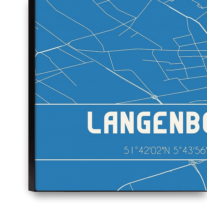 Plan de la carte / plan de la ville néerlandaise Langenboom, située dans la municipalité de MillenSintHubert, province de Brabant du Nord. La carte comprend toutes les routes publiques et les coordonnées du centre de Langenboom.