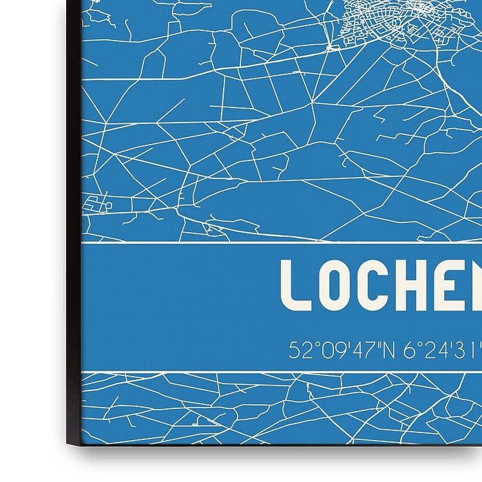 Plan de la carte / plan de la ville néerlandaise de Lochem, située dans l'Achterhoek, dans la municipalité de Lochem, province de Gelderland. La carte comprend toutes les routes publiques et les coordonnées du centre de Lochem.