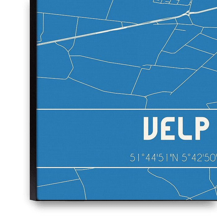 Plan de la carte / plan de la ville néerlandaise de Velp, située dans la municipalité de Grave, province de Brabant du Nord. La carte comprend toutes les routes publiques et les coordonnées du centre de Velp.