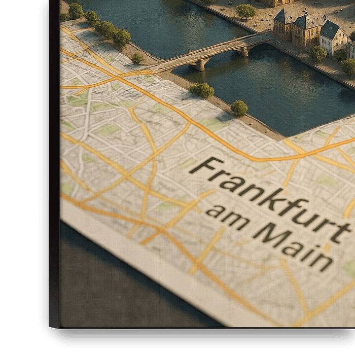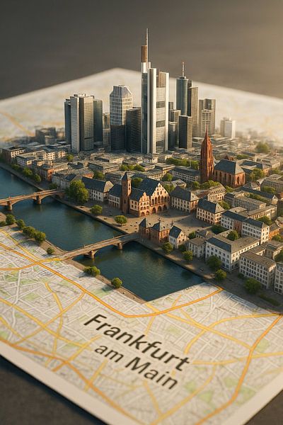 Achetez cette œuvre d'art de paysage Plan de ville de Francfort en 3D - Plan de ville moderne de l'Allemagne par Travel Shop sur toile, aluminium, ArtFrame ou photographie (encadrée), impression d'art en haute qualité et tout format.