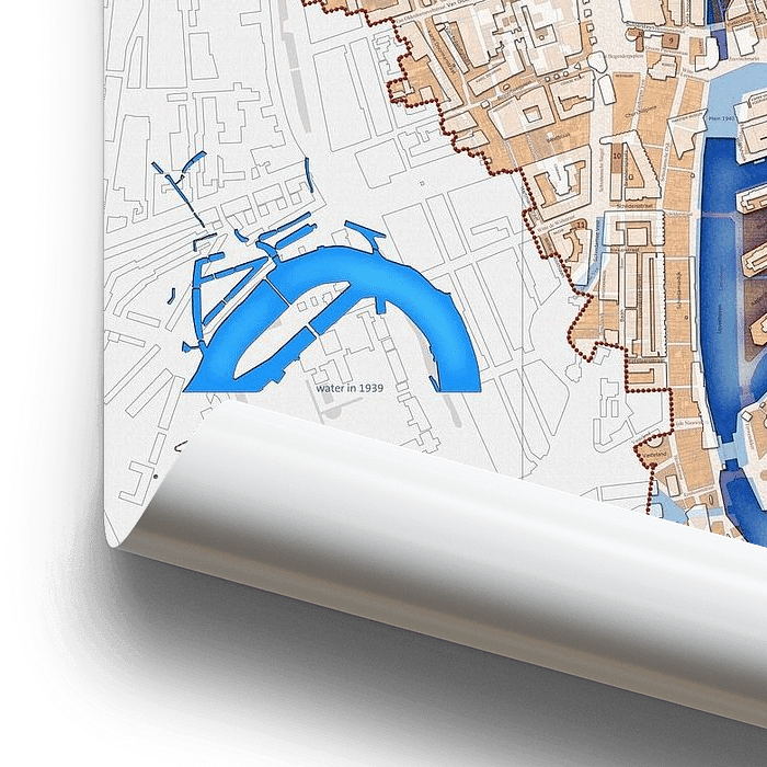 Cette version du Plan double de Rotterdam 1939/Maintenant montre uniquement les blocs de construction et les voies navigables dans la situation actuelle s'ajoutant à ceux situés juste avant la Seconde Guerre mondiale, sans les noms correspondants des rues et des bâtiments. Cette édition est donc parfaite pour les petits tirages ou pour…