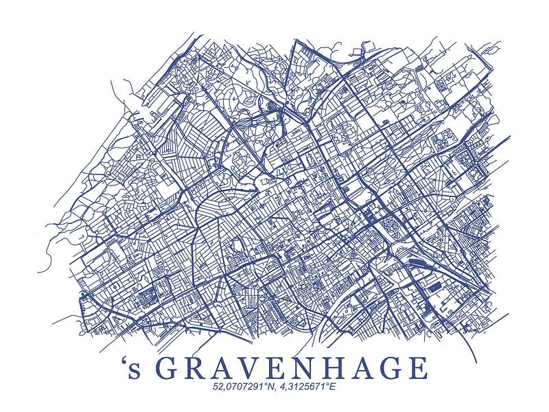 Plan stylisé de La Haye en bleu