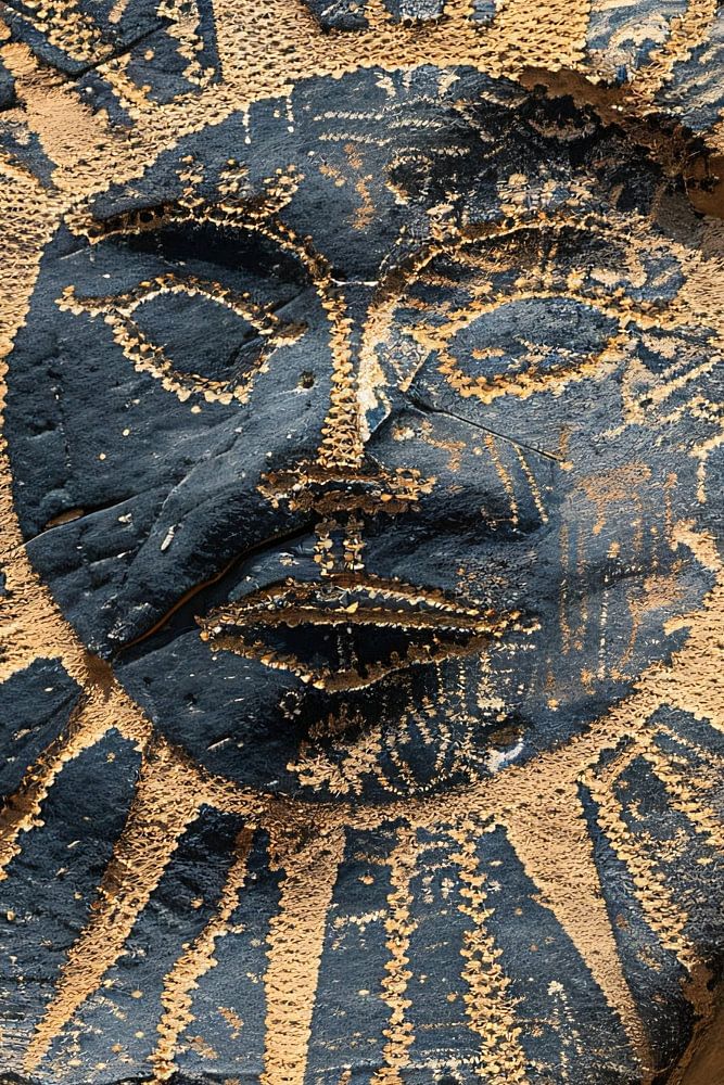 Ce chef-d'œuvre abstrait capture l'essence du soleil dans un style brut et urbain. Les lignes et les couleurs audacieuses créent un contraste saisissant, tandis que les symboles mystérieux stimulent l'imagination. Une œuvre d'art unique qui ajoute une touche de mysticisme et d'énergie à tout espace.