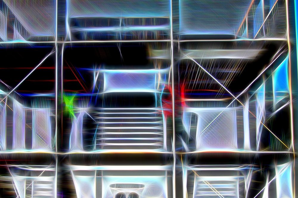 Plate-forme d'observation sur le terril de Hoheward à Herten avec effet néon