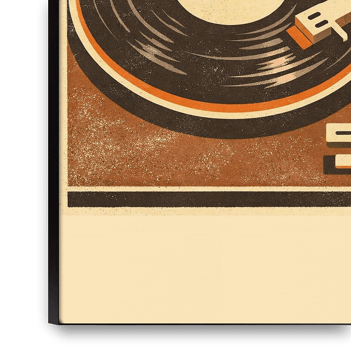 Une illustration vintage chaleureuse représentant une platine vinyle classique et un disque vinyle, inspirée de la culture musicale analogique. Les tons ocres et les détails texturés créent une atmosphère nostalgique, parfaite pour les mélomanes, les DJ, les studios ou les intérieurs d'inspiration rétro.