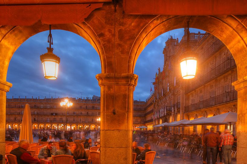 À propos de ‘Plaza Mayor mit Rathaus bei Abenddämmerung, Salamanca, Castilla y Leon, Kastilien-Leon, Spanien’ par Torsten Krüger