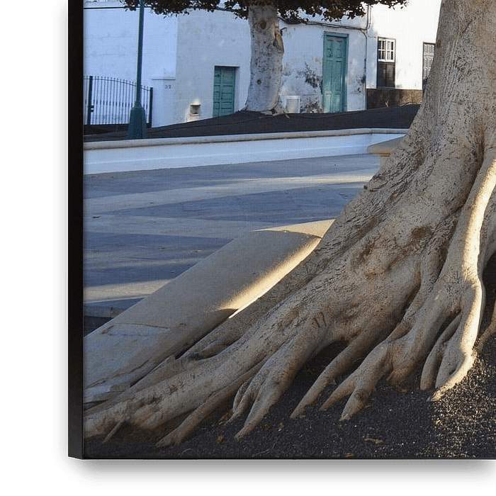 Achetez cette photo Plaza de Los Remedios Yaiza avec ficus et église blanche par My Footprints sur toile, aluminium, ArtFrame ou photographie (encadrée), impression d'art en haute qualité et tout format.
