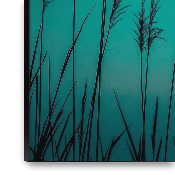 Par une nuit mystique, la lune radieuse se dresse majestueusement au-dessus des doux roseaux qui se balancent au gré du vent léger. Sa splendeur argentée transperce la fraîcheur du crépuscule bleuté et confère à la scène une atmosphère de rêve, tandis que les silhouettes des tiges se détachent mystérieusement sur le fond lumineux.