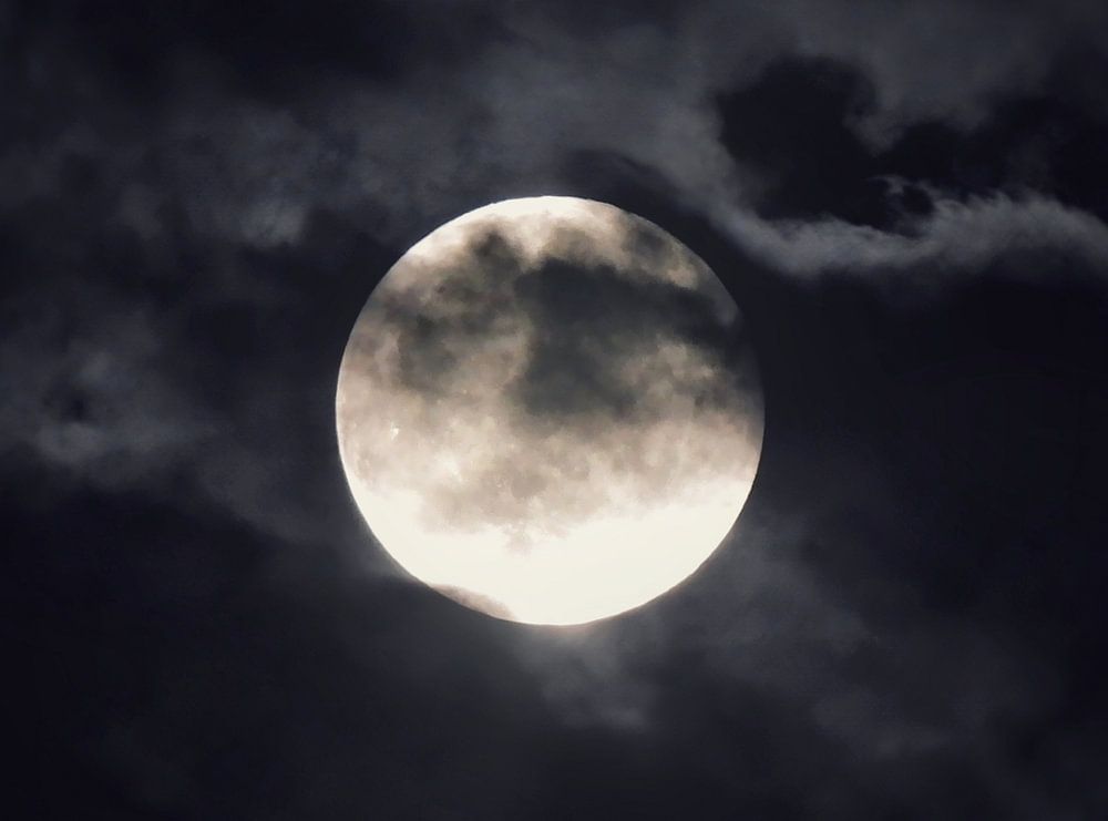 Au cours d'une nuit très nuageuse, la pleine lune n'apparaissait que sporadiquement entre les nuages.