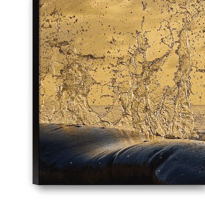 Les vagues frappent le banc de sable dans la lumière chaude et douce de l'aube pour sauter en l'air et créer des motifs et des textures uniques avant de retomber pour rejoindre l'océan.
