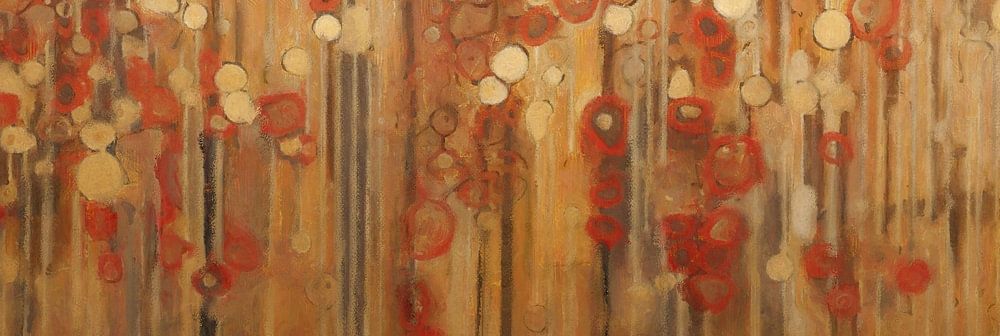 Cette œuvre respire la chaleur et l'éclat avec ses riches tons rouges et or. La représentation abstraite de la fleur semble descendre comme une douce pluie, les couleurs se fondant lentement dans l'arrière-plan. Le dégradé vertical des couleurs confère à l'œuvre un effet à la fois dynamique et apaisant. Idéale pour un salon ou un bureau, cette œuvre apporte une touche de chaleur et d'énergie à tout environnement.
