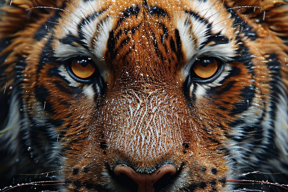 Achetez ce portrait Pluie sur un tigre par Art & Soul Creations sur toile, aluminium, ArtFrame ou photographie (encadrée), impression d'art en haute qualité et tout format.