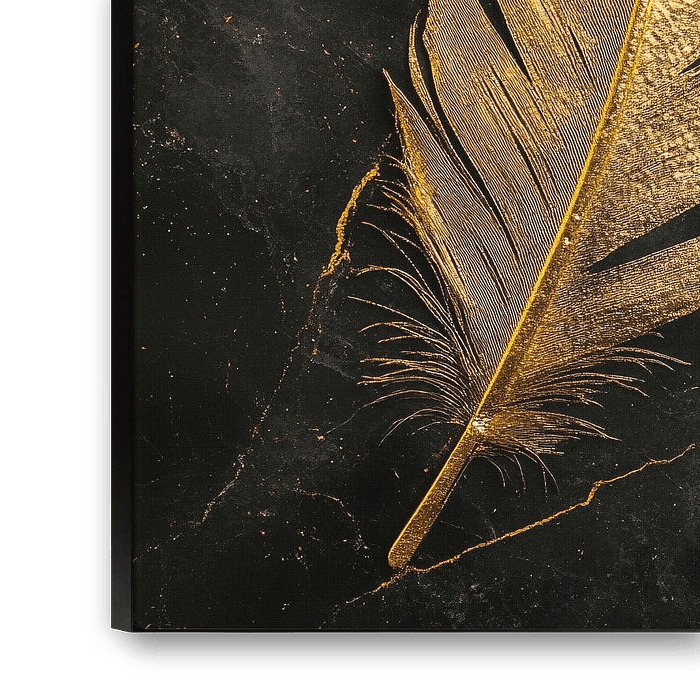 Ce design élégant combine l'élégance d'une plume d'or avec l'aspect luxueux d'un fond de marbre noir. Le contraste entre les tons dorés brillants et le marbre sombre subtilement veiné crée un look intemporel et sophistiqué. Ce motif dégage un sentiment de luxe et de sophistication, idéal pour les intérieurs modernes. Cette œuvre d'art peut être un ajout magnifique aux espaces de vie et de travail, où elle apporte un sentiment d'élégance et de tranquillité. Grâce à sa nature minimaliste, il s'adapte à une grande variété de styles, des plus élégants aux plus modernes, en passant par les plus classiques et les plus éclectiques. Son design attire l'attention sans être envahissant et crée une atmosphère sereine grâce à ses détails raffinés.