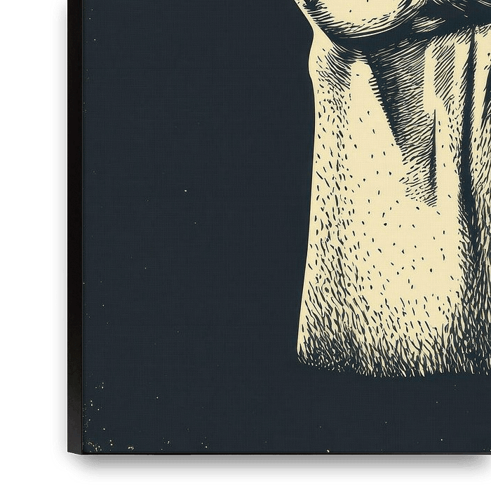 Cette œuvre d'art représente un poing stylisé et levé symbolisant la force, la résistance et la solidarité. Le poing, dessiné dans un style monochrome, est détaillé par des lignes solides et sombres et des ombres qui soulignent la forme de la main. L'absence de couleur lui confère un aspect intemporel et puissant, en concentrant toute l'attention sur la forme et le symbolisme du poing.