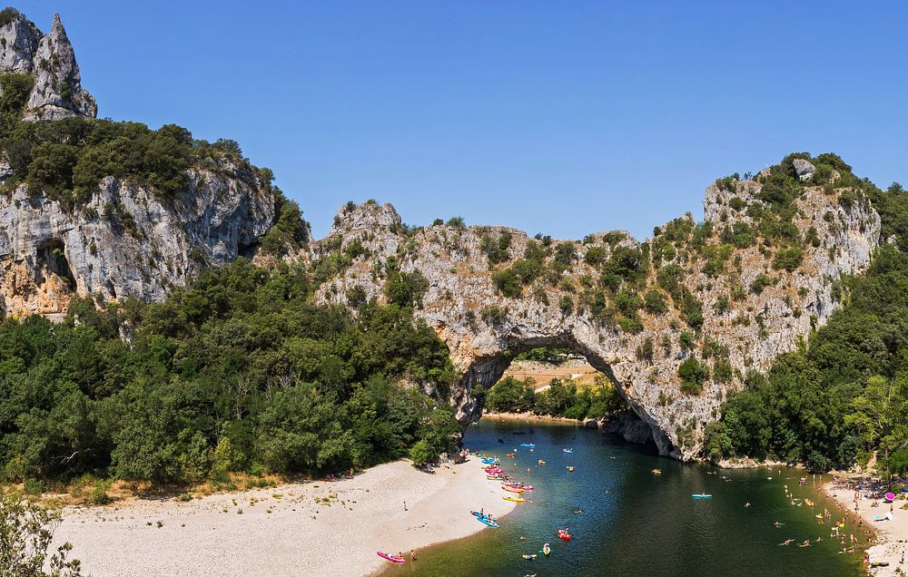 La célèbre arche rocheuse naturelle au-dessus de l'Ardèche en France