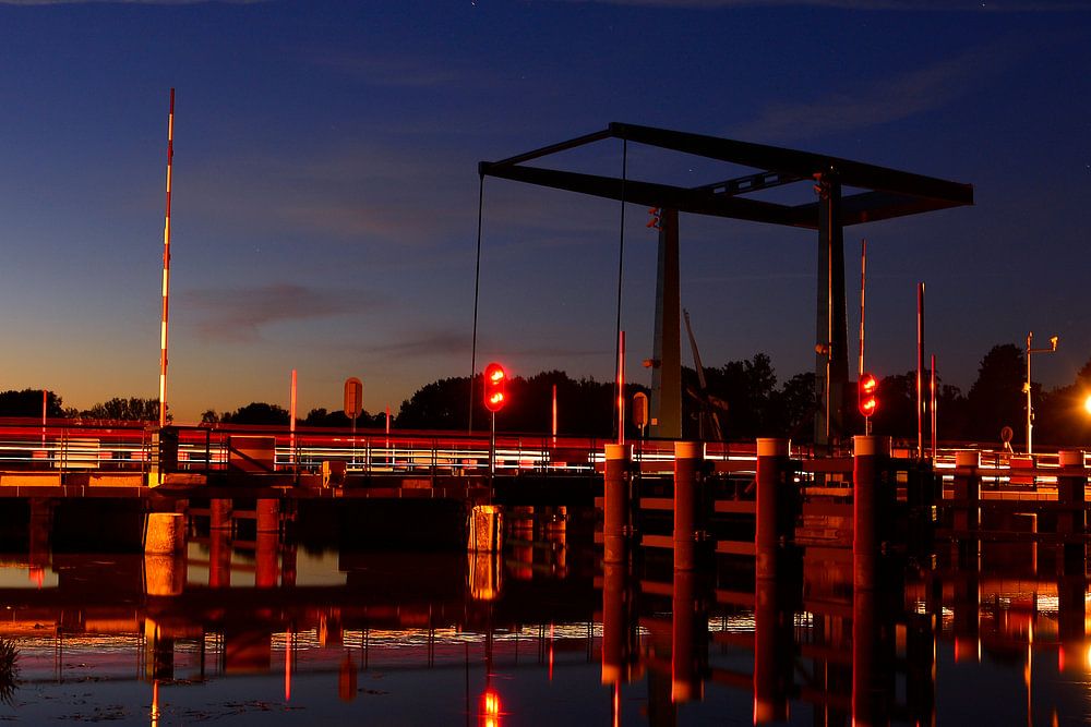 Une belle vue du pont sur l'Oude IJssel près de Laag-Keppel, la nuit. La Hollande ou son meilleur !