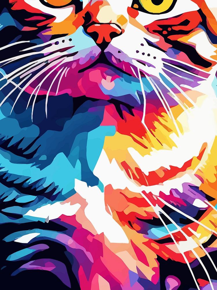 L'art pop américain à poil court est un style artistique vibrant et coloré qui représente la race de chat domestique populaire d'une manière audacieuse et accrocheuse. Connus pour leur pelage lisse et leurs marques distinctes, les chats américains à poil court sont représentés de manière ludique et dynamique dans le pop art, avec des couleurs exagérées et des éléments graphiques qui créent une esthétique amusante et énergique. Ce style est parfait pour les amoureux des chats et les amateurs d'art qui apprécient une approche moderne et fantaisiste des portraits traditionnels d'animaux de compagnie.