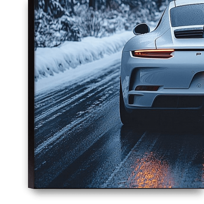 Achetez cette œuvre d'art de paysage Porsche 911 GT3 dans un paysage hivernal par Bianca Bakkenist sur toile, aluminium, ArtFrame ou photographie (encadrée), impression d'art en haute qualité et tout format.