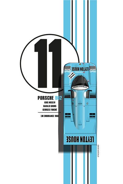 Estampe issue d'une série consacrée à des voitures de course arborant des numéros de départ légendaires.