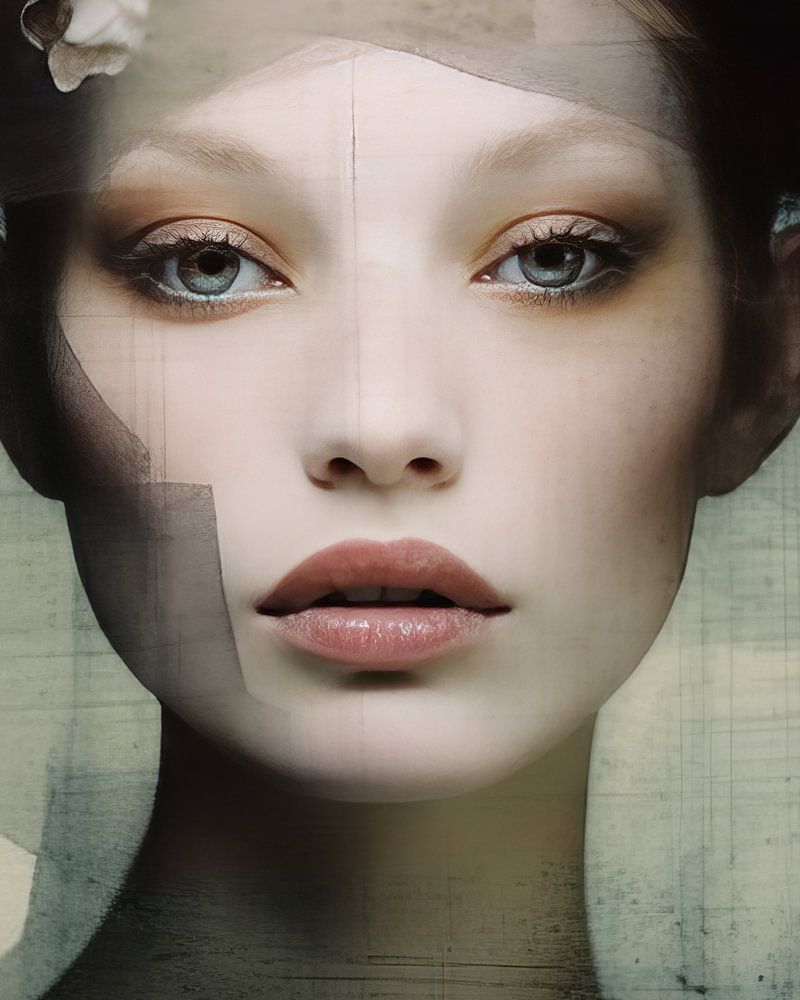 Portrait "Look me in the eyes". Portrait moderne dans des couleurs mates, des tons pastel combinés avec du noir pour le contrat nécessaire. Cette œuvre attirera tous les regards dans votre maison !
