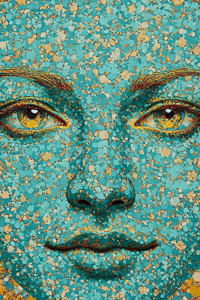 Ce portrait abstrait attire immédiatement l'attention par ses couleurs vives et ses détails intrigants. Le dessin montre un visage subtilement entrelacé dans un motif d'éclaboussures bleues et or, créant un effet presque onirique. Les yeux se détachent, avec une intensité qui semble sonder le spectateur. Cette pièce ajoute non seulement une touche d'art moderne à un espace, mais crée également un sujet de conversation à la fois captivant et mystérieux. Idéale pour un bureau ou un salon, cette œuvre d'art apporte de la couleur, de la profondeur et du caractère à n'importe quel espace.