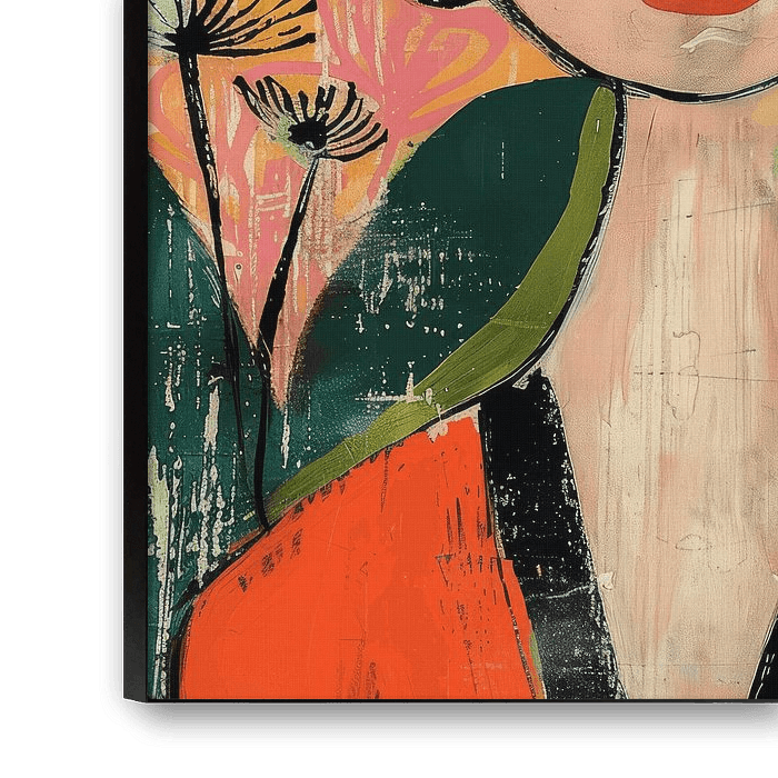Portrait coloré, illustration moderne d'une jeune femme et de tons chauds et joyeux. Voici un objet qui attirera tous les regards dans votre intérieur ! Choisissez vous-même la taille et le matériau et faites-en un véritable accroche-regard.