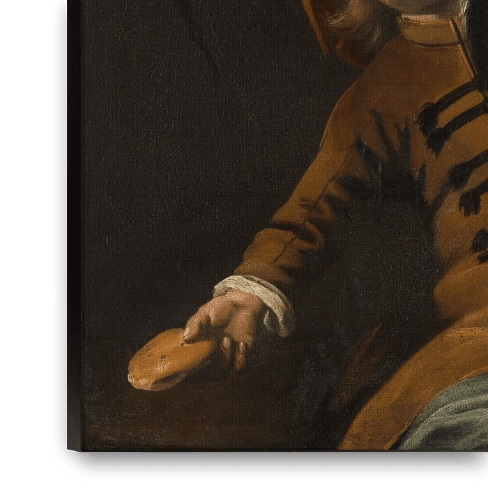 Achetez Portrait d'un garçon avec un chat, un chapeau rouge et un morceau de pain, Judith Leyster en tant que reproduction sur toile, aluminium, ArtFrame ou photographie (encadrée), impression d'art en haute qualité et tout format