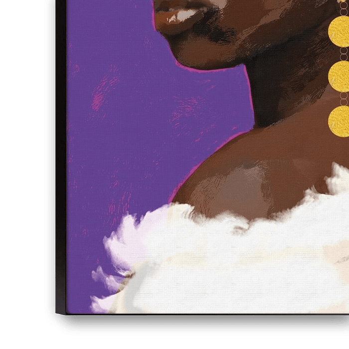 La femme regarde par-dessus son épaule vers vous, le spectateur. Sa boucle d'oreille a un aspect géométrique qui équilibre le portrait. Un point de repos dans l'œuvre qui, pour moi, maintient l'équilibre avec le côté gauche de son visage, son œil, son nez et sa bouche. Le jeu en équilibre. Une beauté.