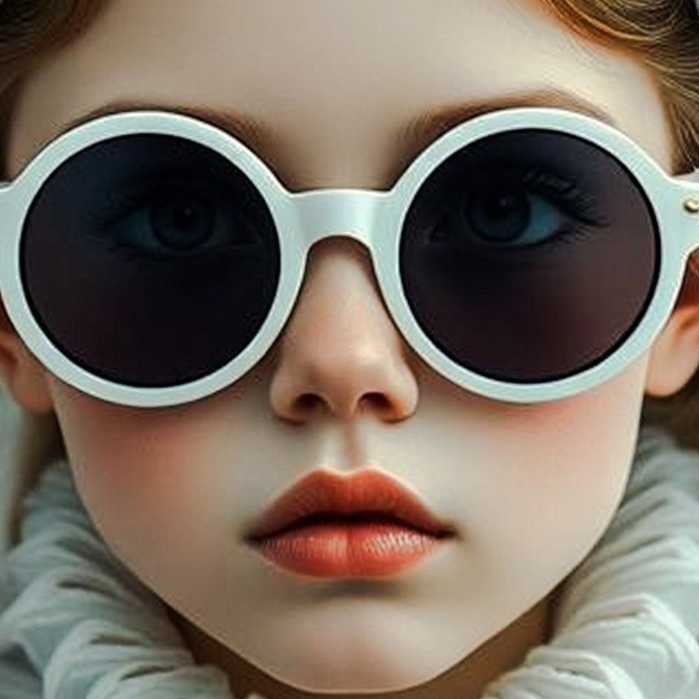 Portrait d'une jeune fille hollandaise avec des perles décoratives bleues de Delft dans ses tresses de cheveux blonds, un grand col en dentelle blanche et une robe bleue sur un fond gris blanc clair inscrit par les anciens maîtres hollandais dans le nouveau style.
