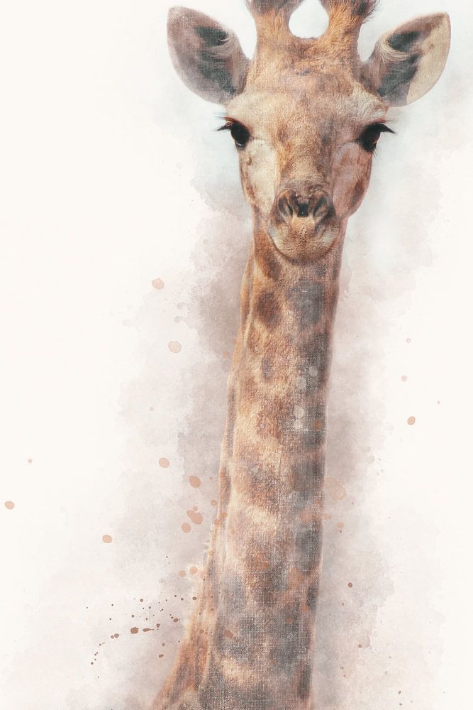 Cette œuvre est une combinaison de photographie et d'art numérique. En utilisant des couleurs et des structures naturelles, un effet chaud, rêveur et doux est créé. Vous pensez peut-être que c'est une peinture à l'aquarelle. Pourtant, si vous regardez la girafe, la netteté vous étonnera.