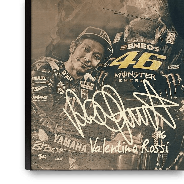Acheter ce collage Portrait de Valentino Rossi par Bert Hooijer sur toile, aluminium, ArtFrame ou photographie (encadrée), impression d'art en haute qualité et tout format.
