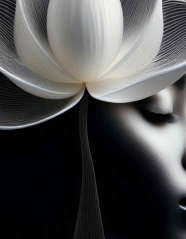 Vous pouvez créer des portraits très intéressants avec des lignes et des ombres. Dans ce cas, j'ai combiné une fleur minimaliste et le contour d'un visage. Un excellent travail pour tous ceux qui aiment les images en noir et blanc.