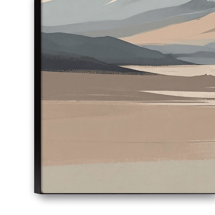 Découvrez la beauté sereine du minimalisme avec cette œuvre d'art moderne. Un moment de tranquillité est capturé dans la simplicité d'un paysage de montagne, où des tons doux de beige, de gris et de blanc fusionnent pour créer un sentiment de calme. La superposition des pics montagneux crée une dynamique subtile, tandis que le ciel étendu offre un espace de respiration dans l'agitation d'aujourd'hui. Il s'agit d'une ode tranquille à la nature, parfaite pour ajouter une touche d'élégance moderne à n'importe quel espace. Laissez-vous entraîner dans un voyage visuel vers un lieu où le temps semble s'arrêter et où chaque regard promet une nouvelle découverte.
