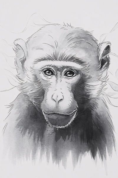 Ce dessin représente une magnifique aquarelle d'un singe en noir et blanc. Les coups de pinceau doux et fluides donnent à l'image une impression de sérénité, tandis que les tons simples de noir, de blanc et de gris confèrent au dessin un caractère minimaliste et moderne. Les yeux expressifs du singe attirent l'attention et donnent au dessin un aspect vivant et réaliste, malgré son style subtil. Cette œuvre d'art est parfaite pour les amoureux des animaux, de la nature et de l'art moderne. Il est idéal pour créer une atmosphère paisible dans des espaces tels que la chambre à coucher, le bureau ou l'étude. Avec ses couleurs neutres, il s'intègre facilement dans une variété de styles d'intérieur, de l'épuré au moderne en passant par le chaleureux.