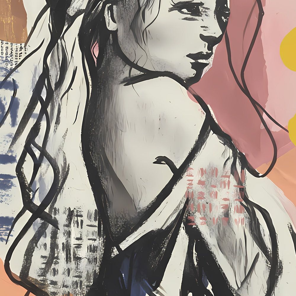 Une œuvre d'art unique en son genre. Réalisé à partir d'un dessin au fusain fait à la main, partiellement généré avec AI et affiné dans Photoshop.