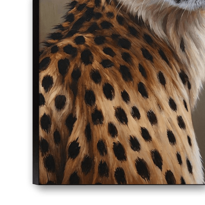 Ce portrait majestueux d'un guépard, au regard intense et aux détails réalistes, serait une pièce remarquable dans tout intérieur moderne. Les contrastes marqués entre les taches et la douceur de l'environnement créent un effet dynamique qui souligne la force et l'élégance de cet animal impressionnant. L'œuvre hyperréaliste est exécutée avec une texture riche et des couleurs chaudes et profondes qui semblent capturer la lumière sur la toile. Il s'agit d'une œuvre intemporelle qui allie beauté naturelle et savoir-faire artistique, parfaite pour ceux qui souhaitent enrichir leur espace d'une touche de nature sauvage.