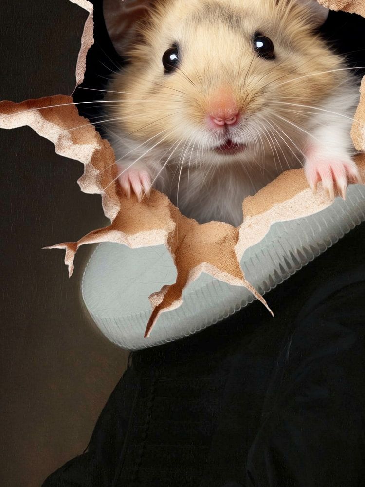 En 2024, un hamster espiègle (mais aussi très gentil) a rongé le mur sur lequel le tableau était accroché.