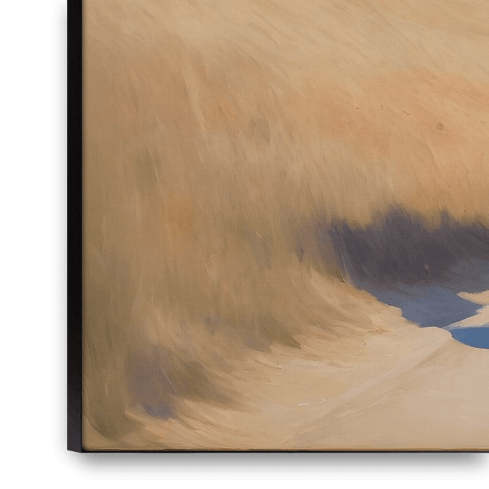 Le tableau prend tout son sens grâce à des éléments inhabituels qui lui confèrent une dimension presque onirique : le sable n'est pas comme prévu, mais a une teinte rose tendre, ce qui ajoute une subtile qualité surréaliste et brouille la frontière entre la réalité et l'imagination. La femme semble marcher vers l'eau comme dans un rêve, une figure intemporelle qui incarne à la fois la nostalgie et la liberté des années 1970. Les couleurs pastel se fondent les unes dans les autres pour créer un ensemble presque éthéré, apportant paix et profondeur à cette œuvre d'art dans n'importe quel espace.