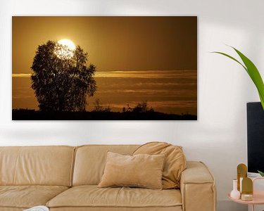 Coucher de soleil à la Posbank aux Pays-Bas. De belles couleurs pendant que l'arbre regarde avec nous.