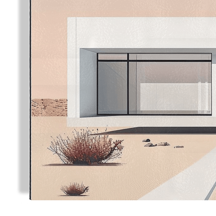 Un poster d'architecture à couper le souffle, montre un bâtiment inspiré du Bauhaus dans un style minimaliste.