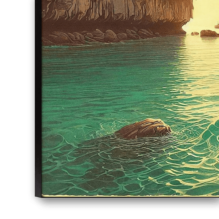 Cette œuvre est mon ode aux lentes matinées insulaires de la mer d'Andaman, lorsque la marée murmure et que les falaises brillent. Je voulais de la clarté et de l'espace plutôt que du bruit, l'équilibre classique d'une affiche de voyage avec une géométrie simple, une lumière constante et de l'espace pour respirer. L'ambiance est lumineuse et réparatrice, une petite invitation à faire une pause, à regarder l'eau changer de couleur et à laisser la journée se dérouler en douceur.