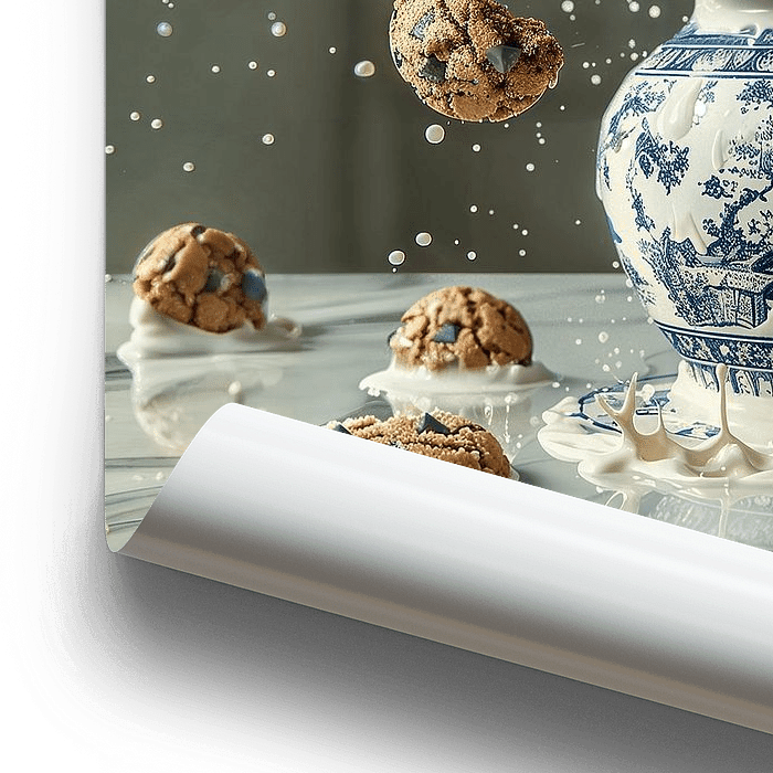 Achetez cette œuvre d'art moderne Pot à lait bleu Delft avec biscuits par Studio Ypie sur toile, aluminium, ArtFrame ou photographie (encadrée), impression d'art en haute qualité et tout format.