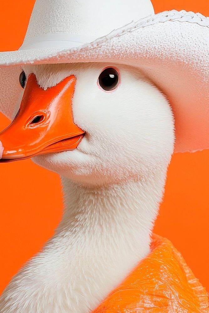 Achetez cette œuvre d'art d'oiseau Poussin au look de cow-boy devant l'orange par Poster Art Shop sur toile, aluminium, ArtFrame ou photographie (encadrée), impression d'art en haute qualité et tout format.