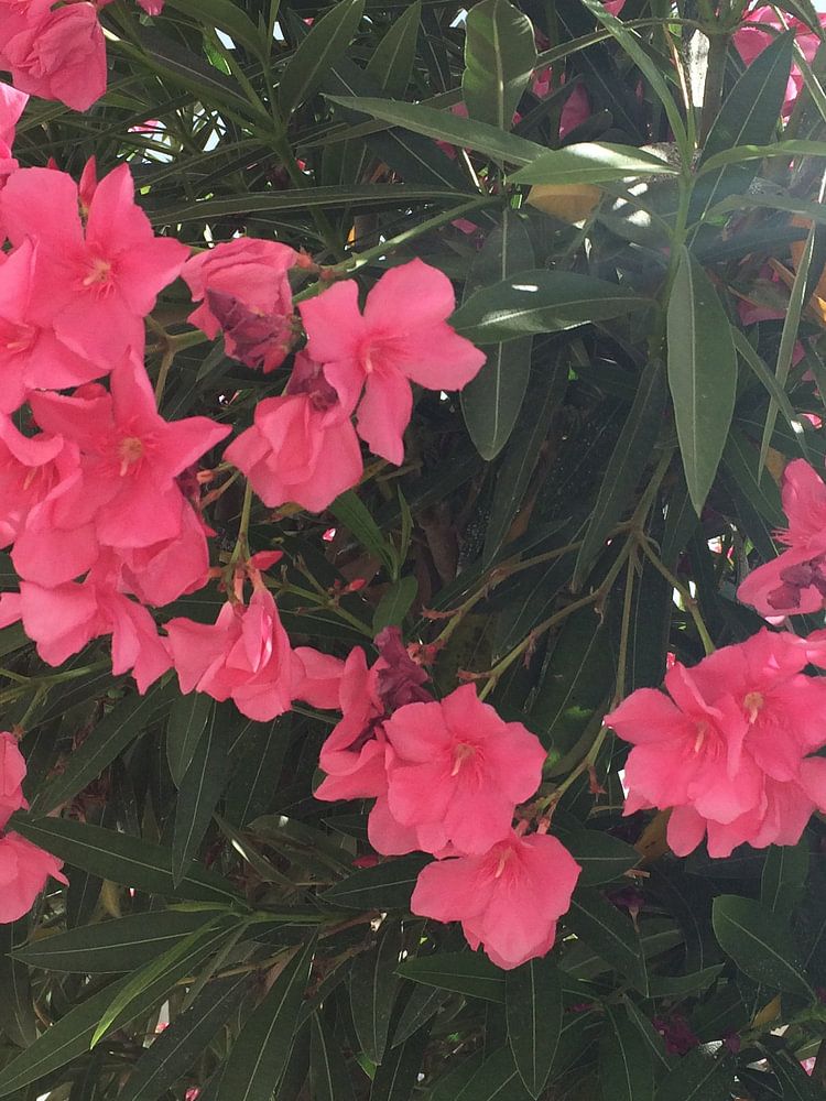 Op deze foto zien we prachtige roze gekleurde bloemen in een boom. Het zonlicht gecombineerd met de kleuren bootsen perfect het zomerse gevoel van vakanties in zuid Europa weer.