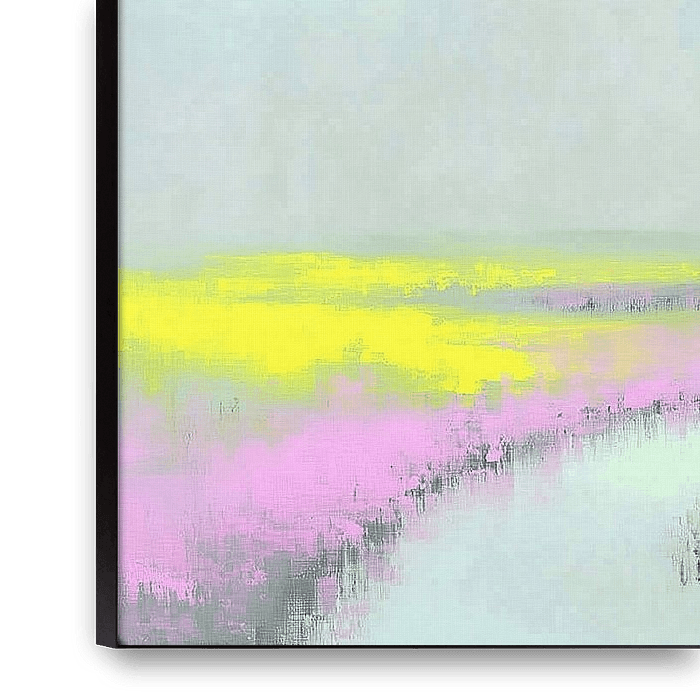 Kijkend naar dit werk merk je de kleine beslissingen: de huizen net buiten het midden voor balans, de waterloop als leidende lijn, het gebruik van helder geel tegen koel grijs om een frisse ochtendtemperatuur te suggereren. Het is een landschap schilderij dat ruimte geeft om te dwalen; je loopt met je handen in je zak over een pad van kleur richting die paar huisjes en voelt hoe de lente zacht op je neerdaalt.